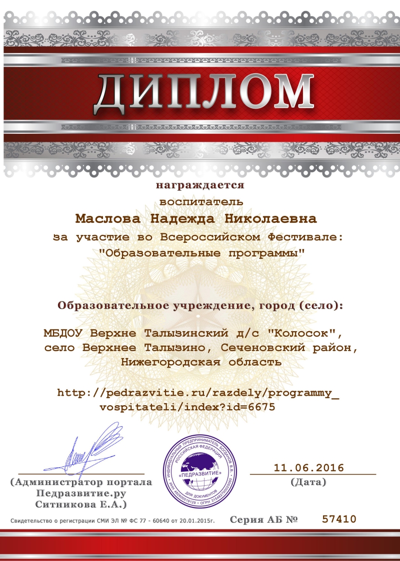 Личный сайт воспитателя МБДОУ Детский сад "Колосок" Масловой Надежды Николаевны